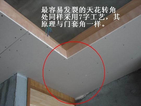 天花转角处采用七字型天花,防止下沉和开裂。